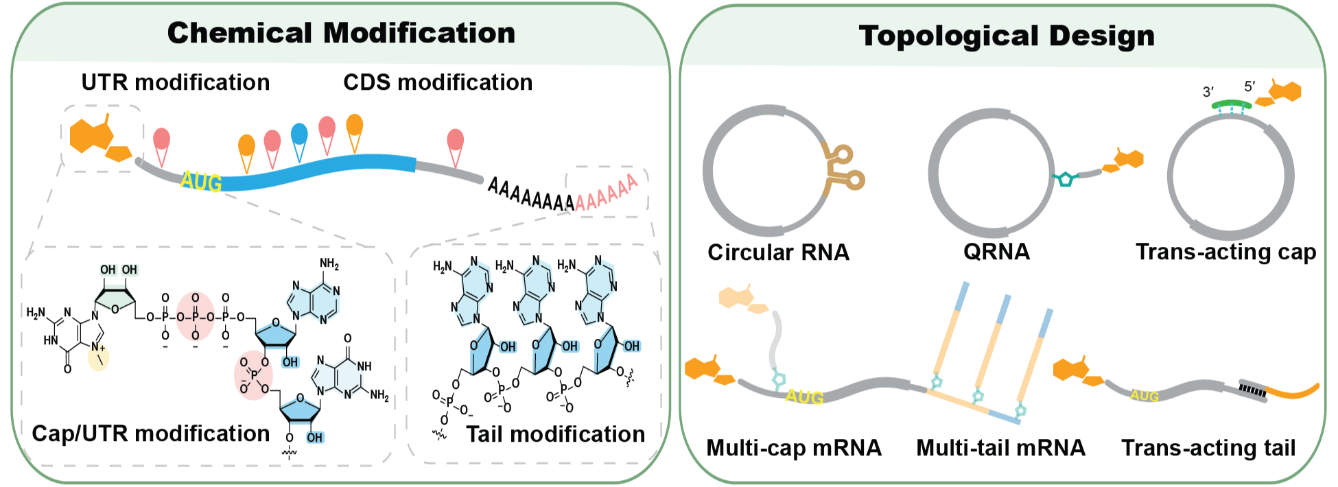 Dangliang Liu*, Hongyu Chen*, Alisia Pan, Xiao Wang#. Beyond the sequence: chemical and topological design and innovations in mRNA therapeutics. Chemical Reviews 2026. DOI: 10.1021/acs.chemrev.5c00347. [Full text]